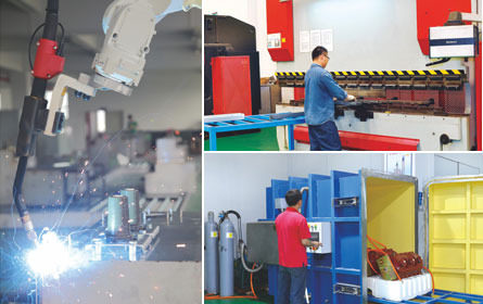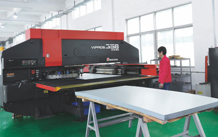 生产设备:德国、芬兰和日本进口的数控加工设备、全自动静电喷涂生产线、钣金加工设备、机械加工中心